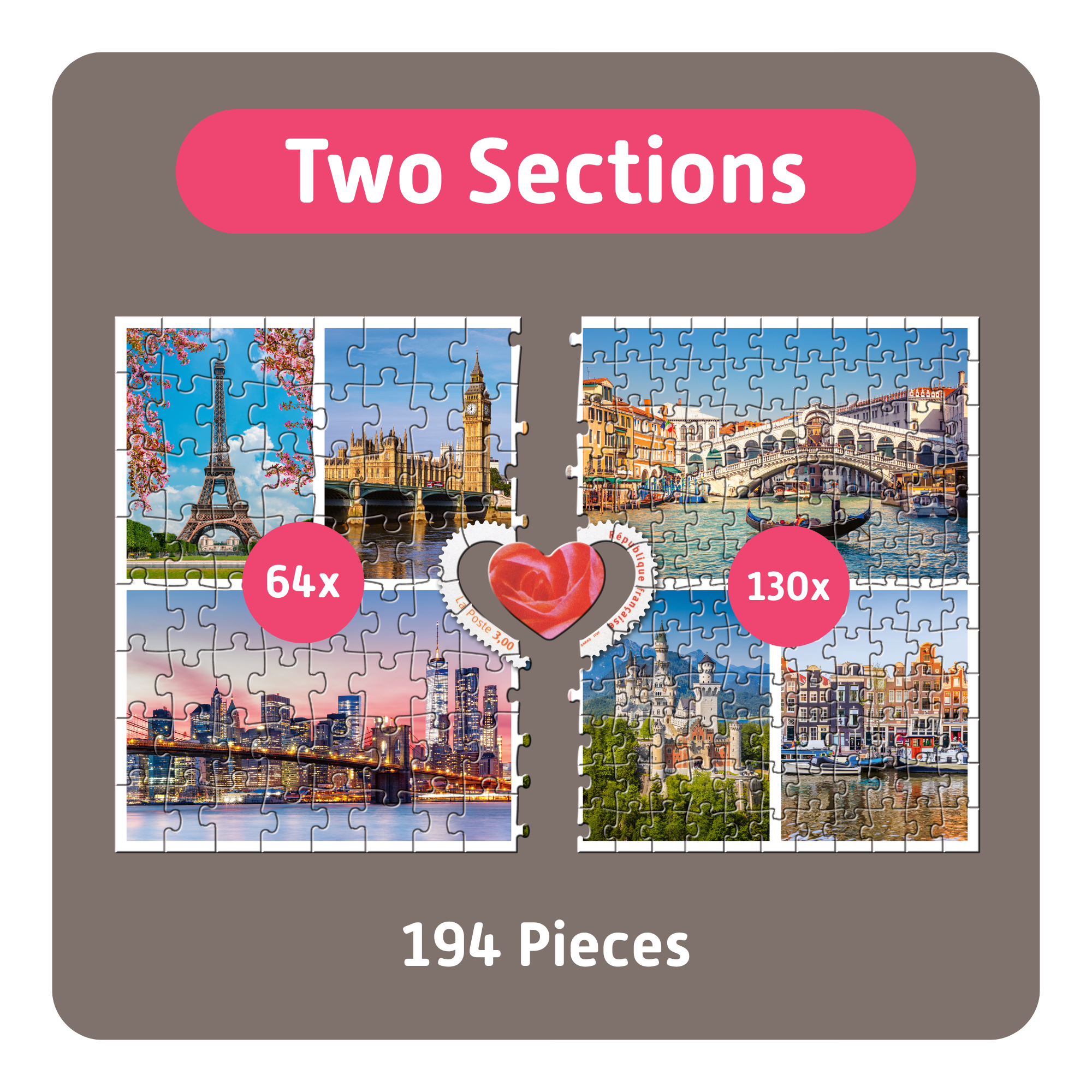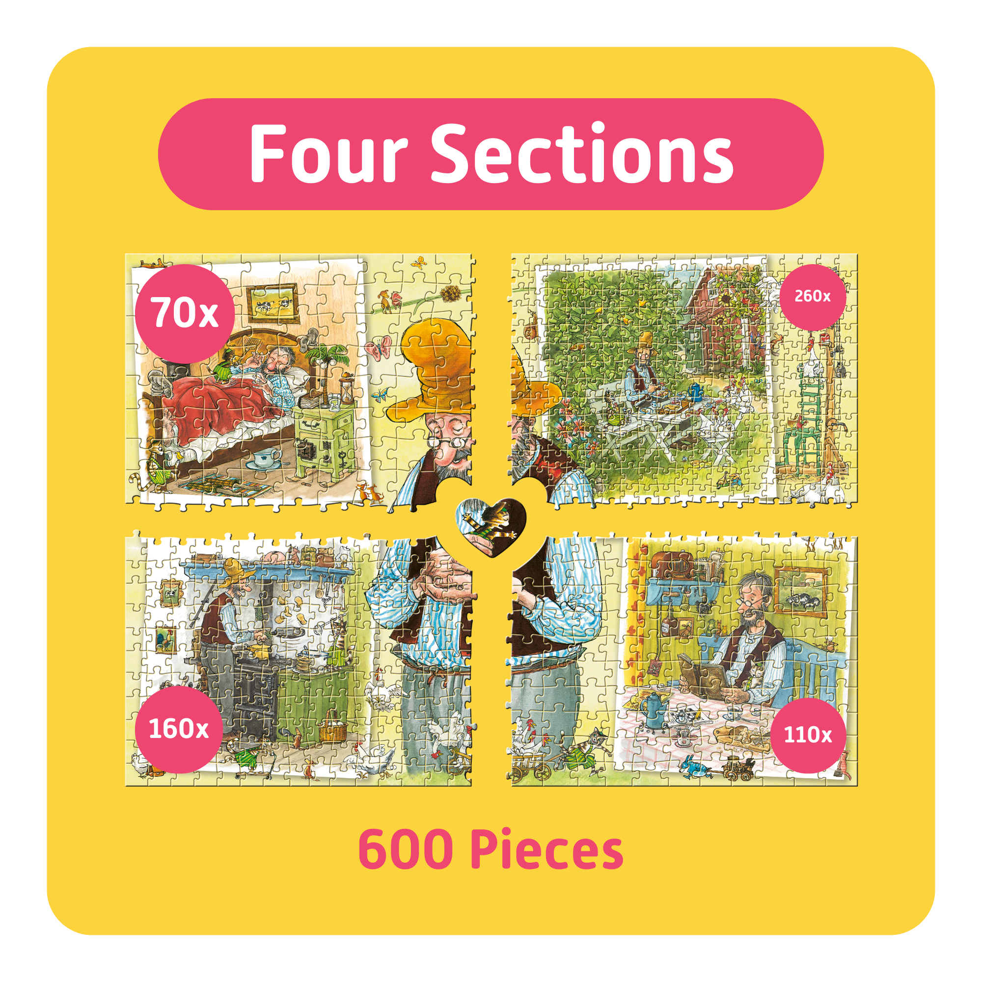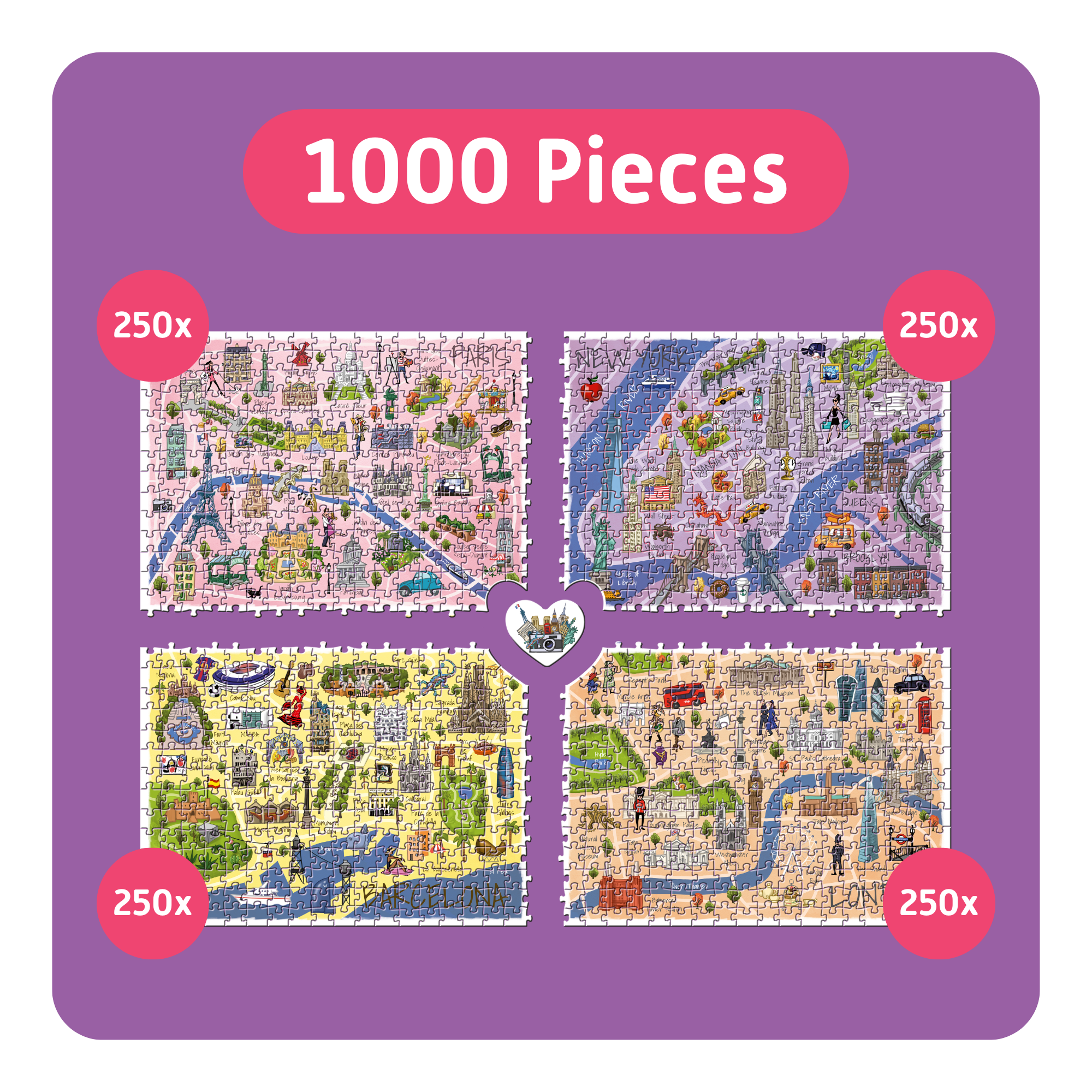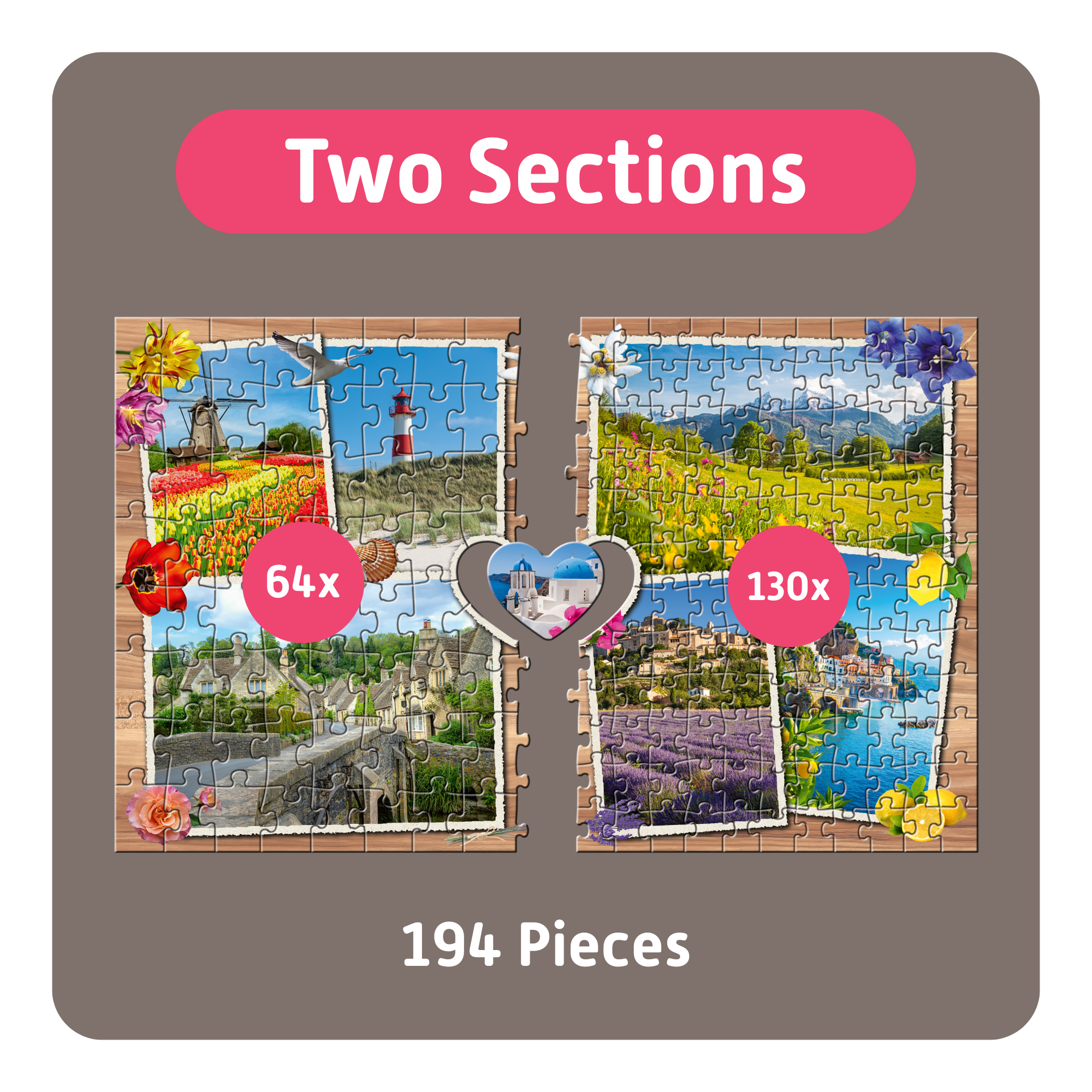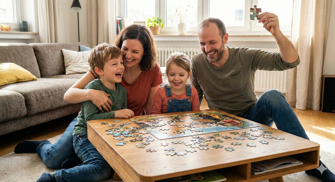 More time together. Whether with family, friends, or across generations – TEAMPUZZLE brings everyone around the table. Each puzzle is different: sometimes with large and sometimes with small pieces, sometimes in two halves or four quarters, and with 194 to 1000 pieces. What unites everyone is the shared joy of puzzling – and a central piece that is put together at the end.